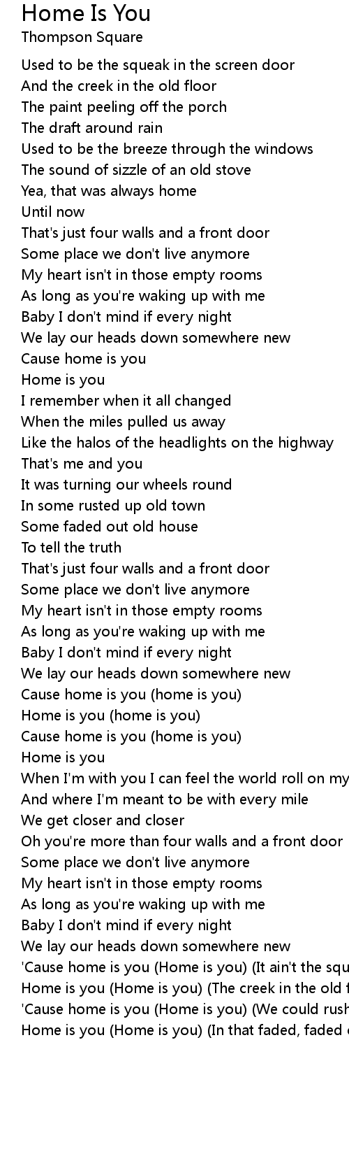 'Cause home is you (Home is you) (It ain't the squeak in the screen door) |