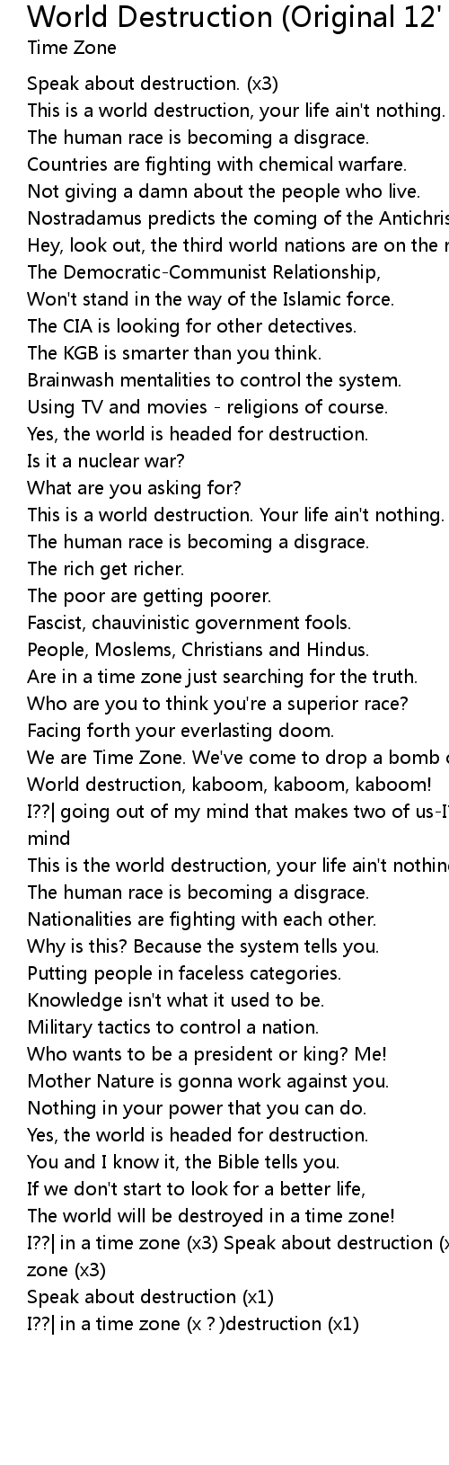 | 歌曲 | World Destruction (Original 12' Mix) |