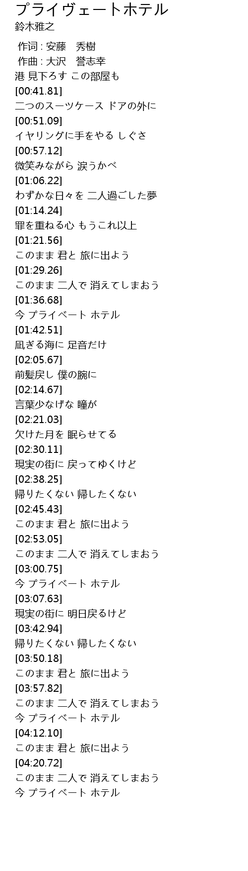 | [03:58.61] | このまま 二人で 消えてしまおう |