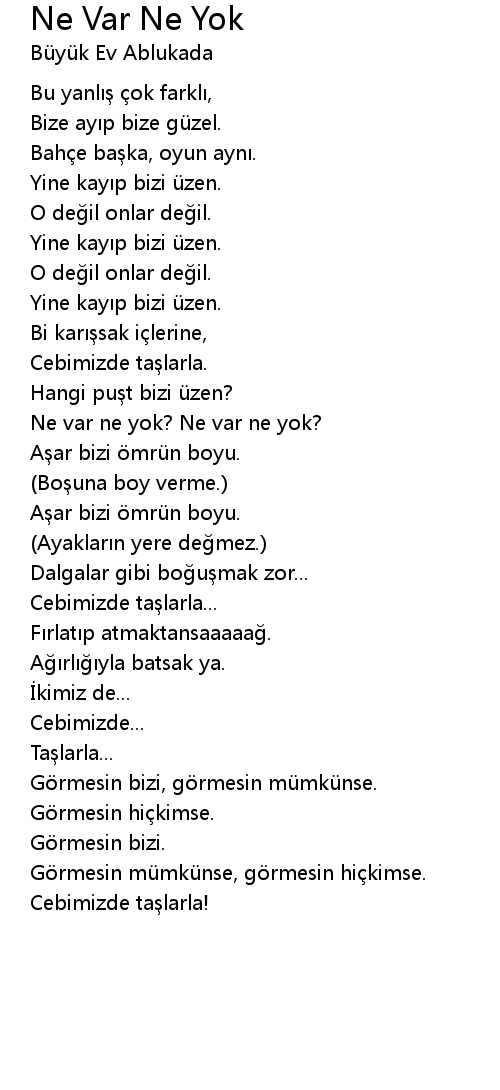 | 歌曲 | Ne Var Ne Yok |