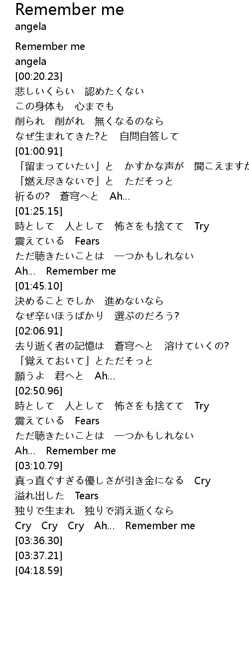 | [03:27.48] | Cry Cry Cry Ah… Remember me |