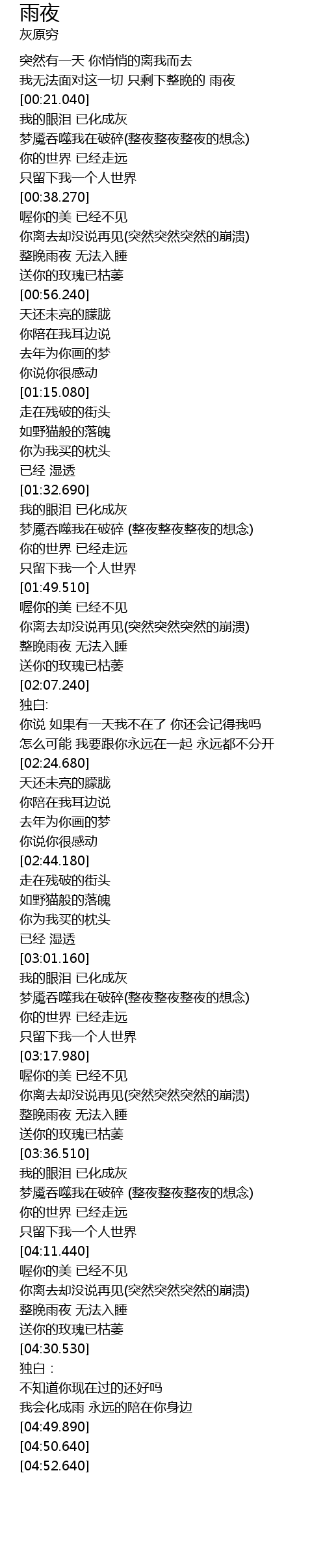 | [04:20.770] | 整晚雨夜 无法入睡 |