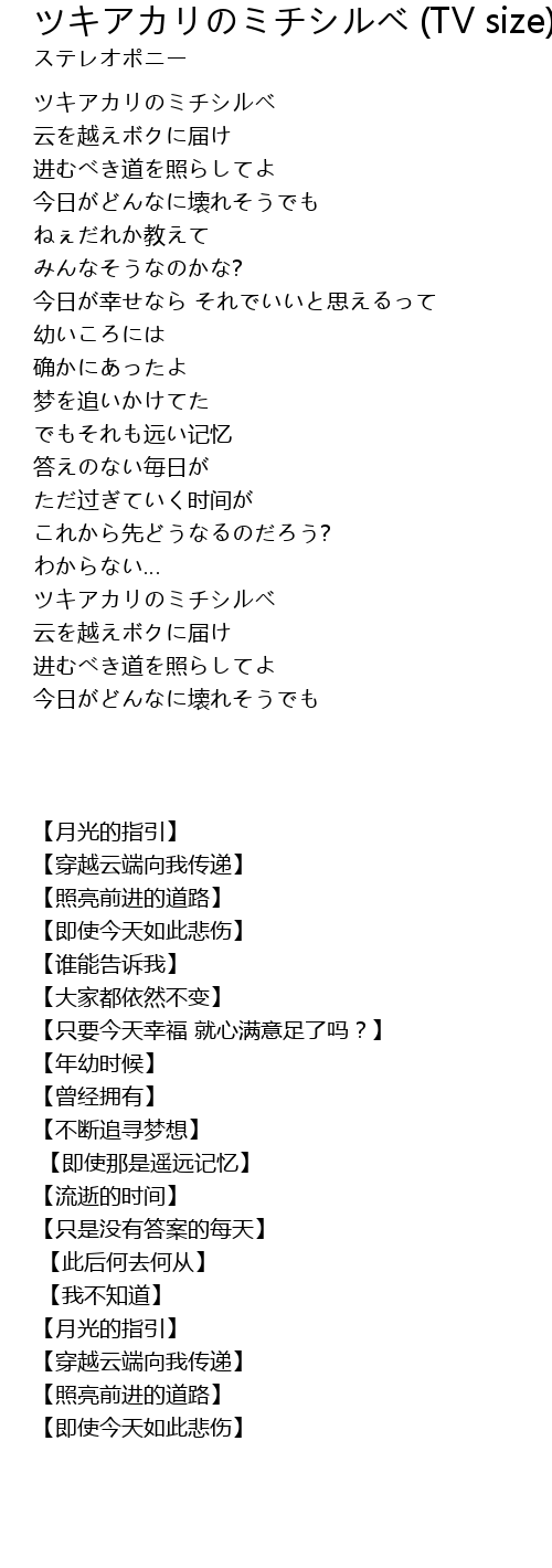 | 歌曲 | ツキアカリのミチシルベ (TV size) |