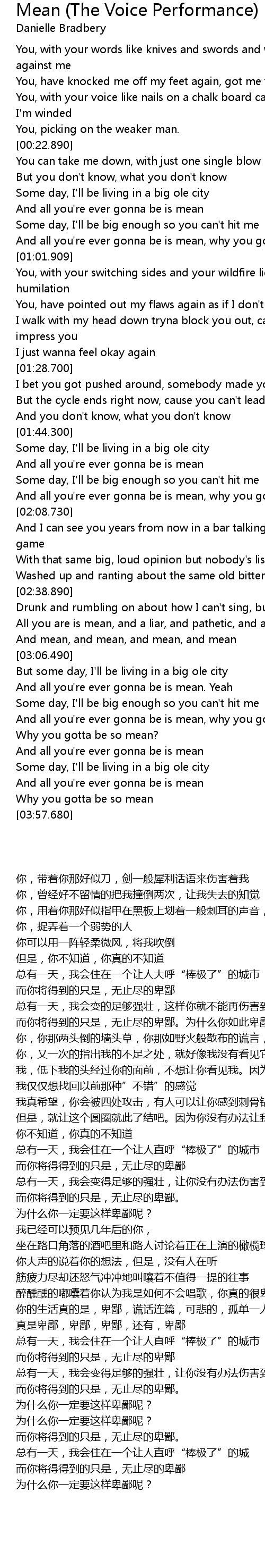 Drunk and rumbling on about how I can't sing, but all you are is mean |