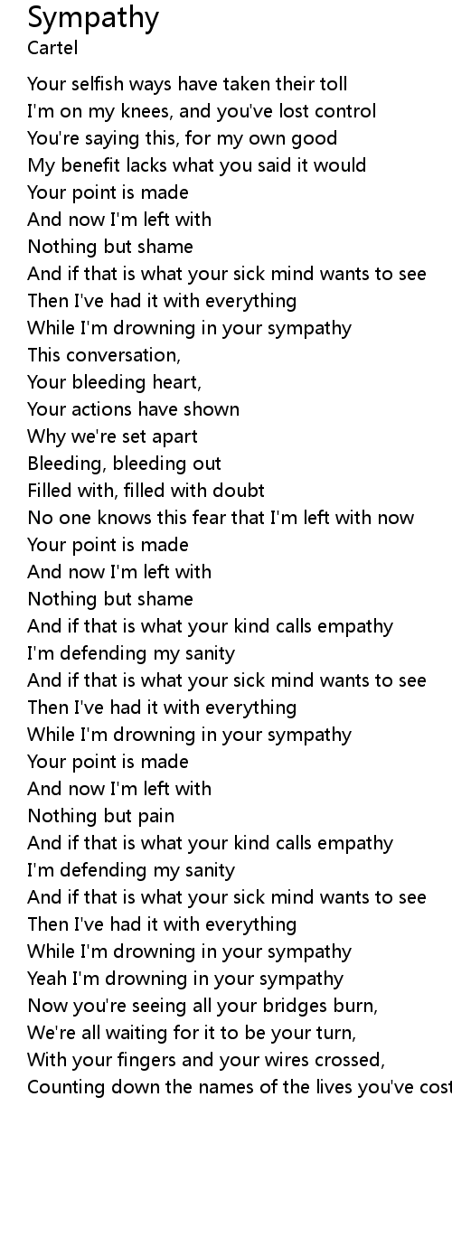 | Yeah I'm drowning in your sympathy | |