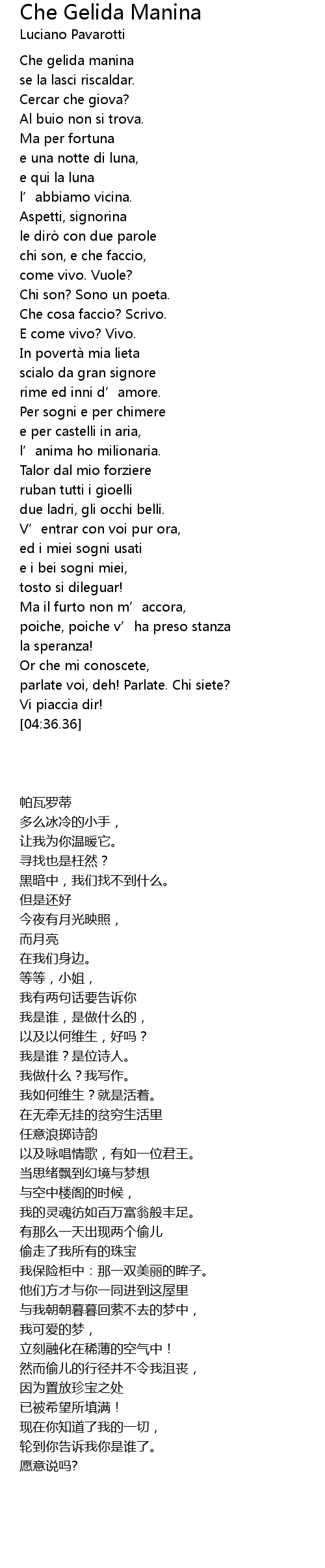 | [00:06.23] | Che gelida manina |