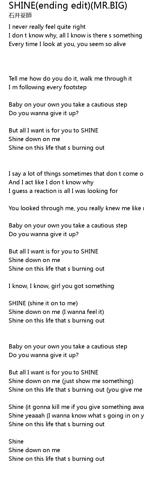 Shine yeaaah (I wanna know what s going in on your mind) |