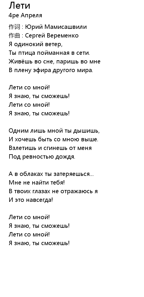 | 作词 : Юрий Мамисашвили | |