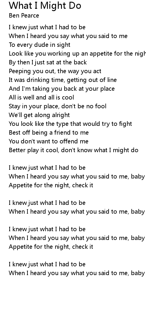 Better play it cool, don't know what I might do |