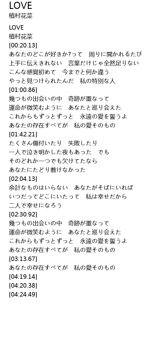 | [04:04.69] | あなたの存在すべてが 私の愛そのもの |