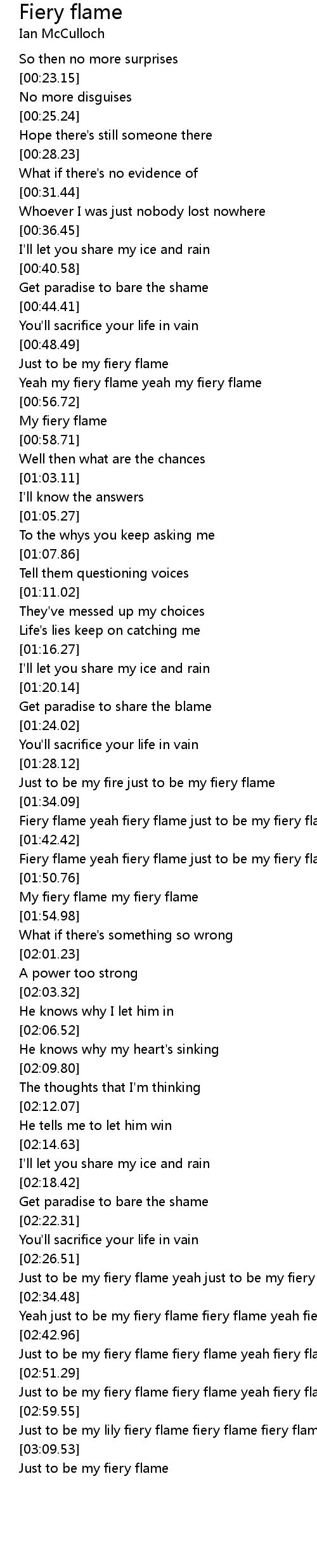 Just to be my lily fiery flame fiery flame fiery flame |