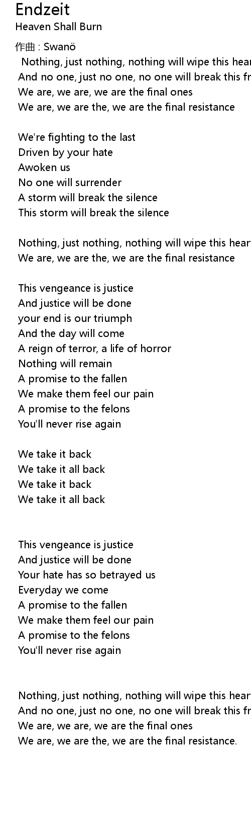 | 歌手 | Heaven Shall Burn |