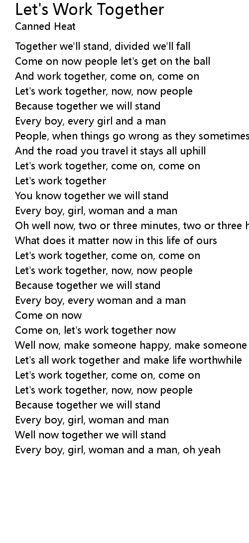 Come on, let's work together now |