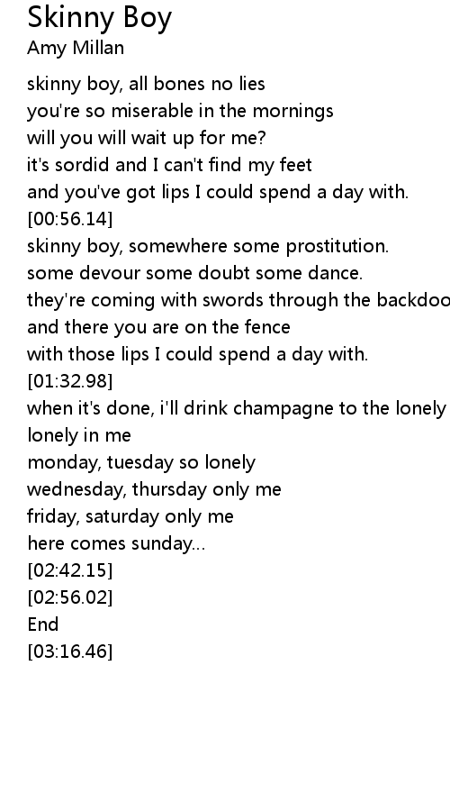 | [00:22.17] | skinny boy, all bones no lies |