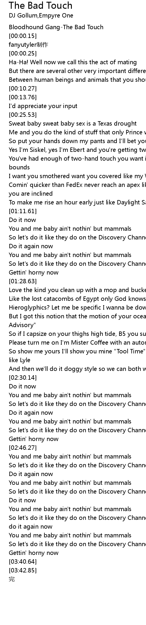 | [00:00.11] | Bloodhound Gang-The Bad Touch |