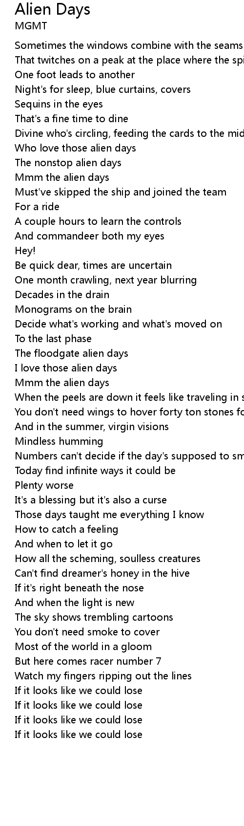Who love those alien days |