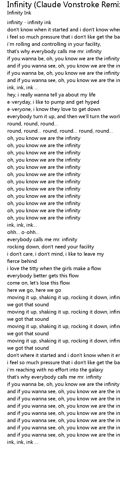 | moving it up, shaking it up, rocking it down, infinity ink, | |