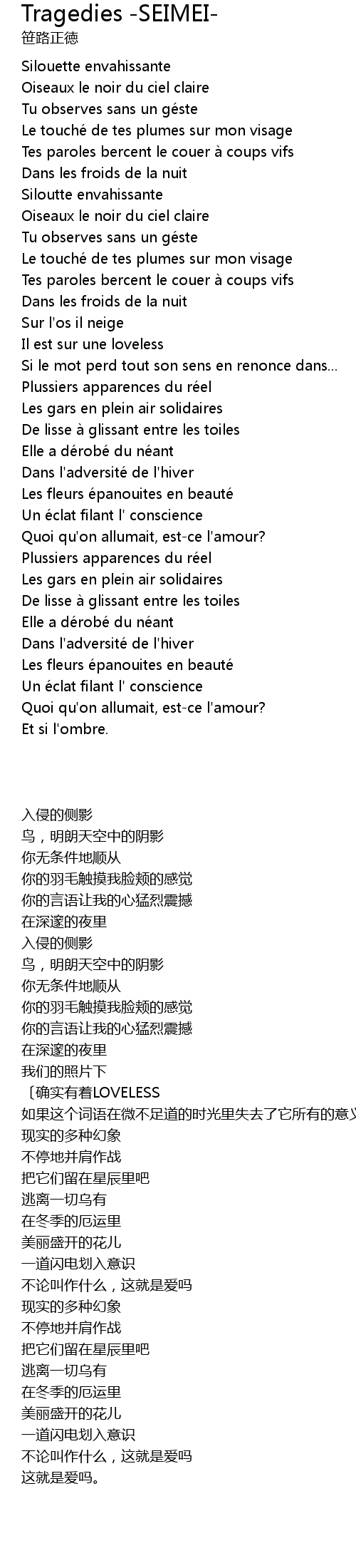 | [00:22.390] | Le touche de tes plumes sur mon visage |