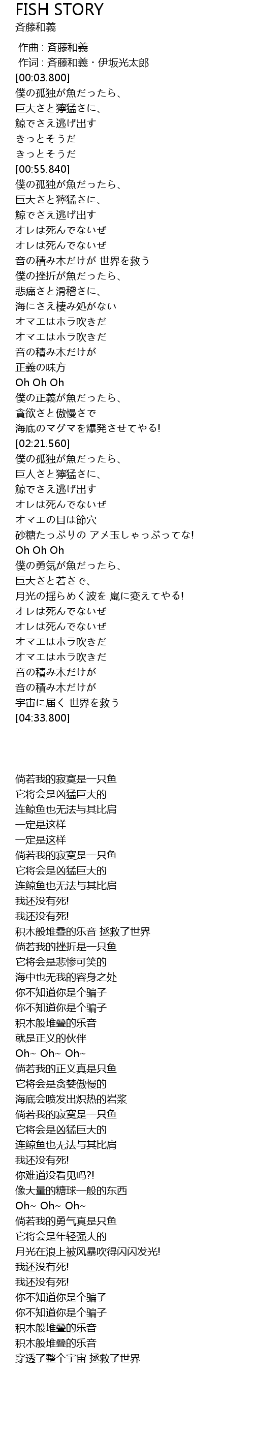 | [00:01.00] | 作词 : 斉藤和義・伊坂光太郎 |