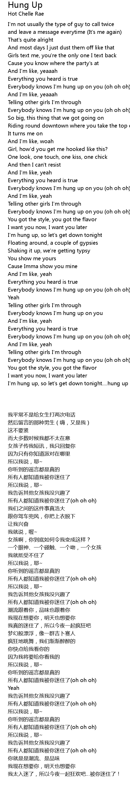 I'm hung up, so let's get down tonight....hung up on you! |
