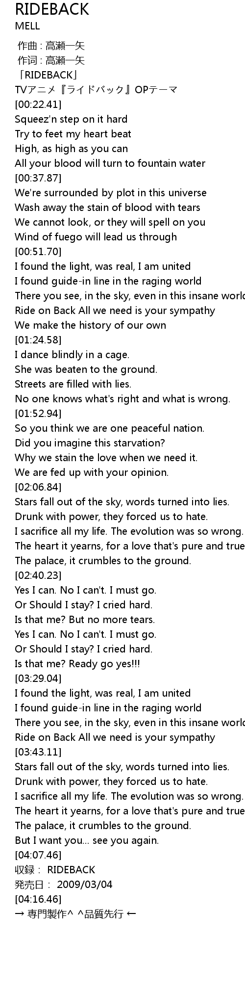 | [04:10.46] | 収録: RIDEBACK |