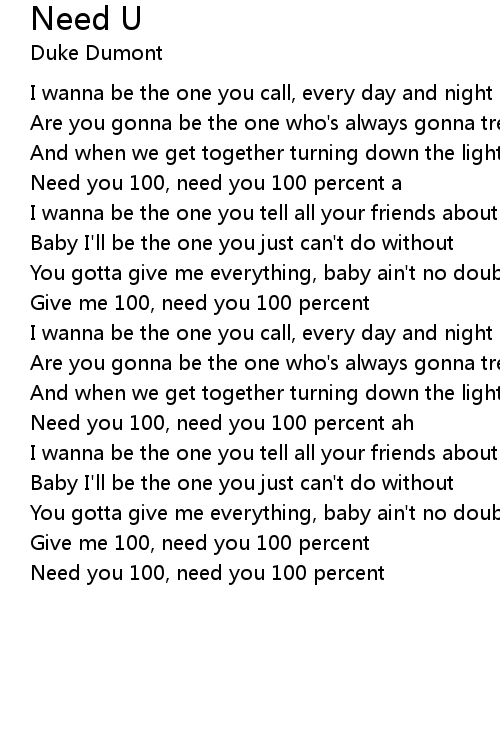 Need you 100, need you 100 percent a |