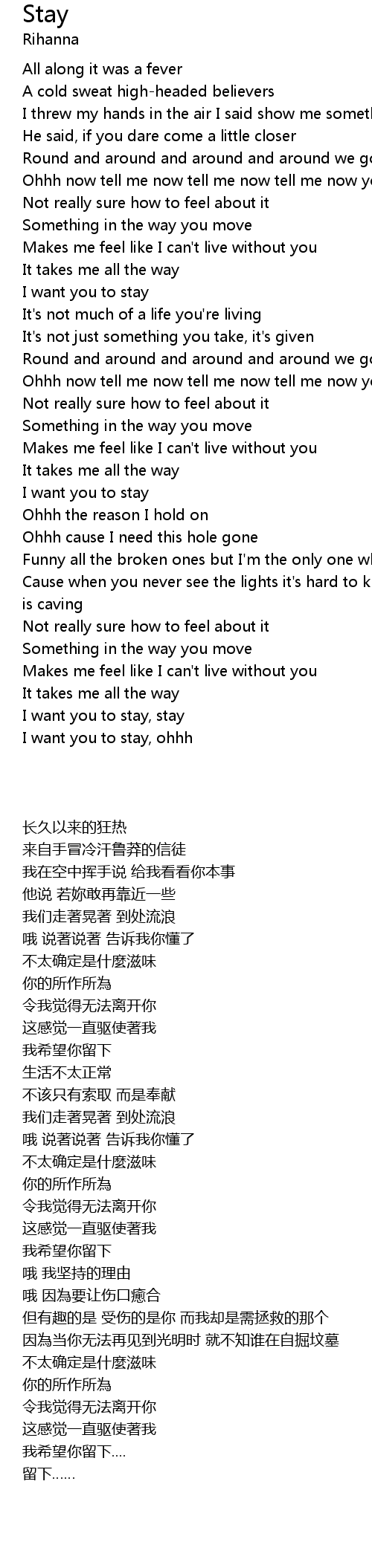 I want you to stay, ohhh |
