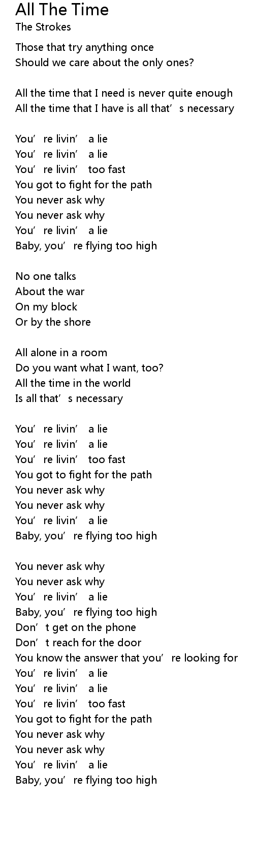 | All the time that I need is never quite enough | |