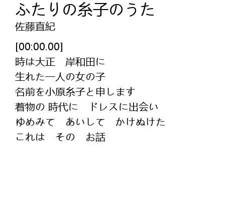 | [00:18.99] | 名前を小原糸子と申します |