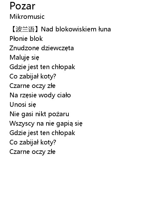 | [00:17.88] | 【波兰语】Nad blokowiskiem łuna |