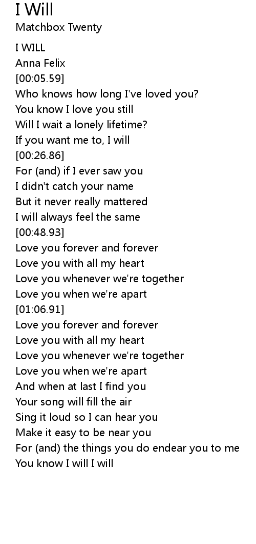 You know I will I will |