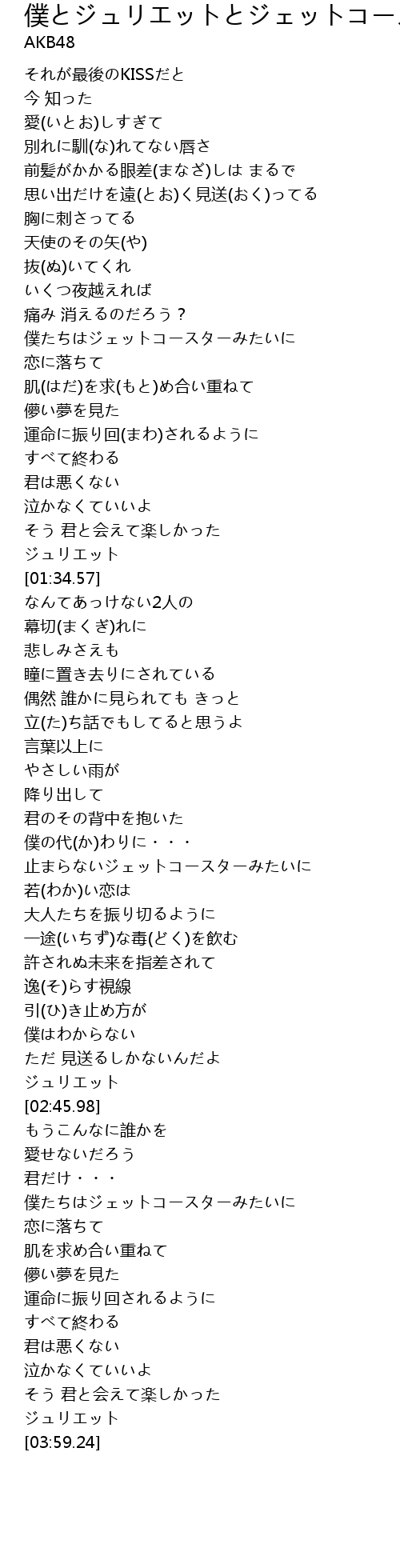 | 歌曲 | 僕とジュリエットとジェットコースター |