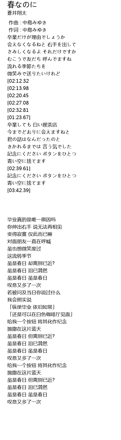 | [02:13.98] | 虽是春日 但离别已近? |