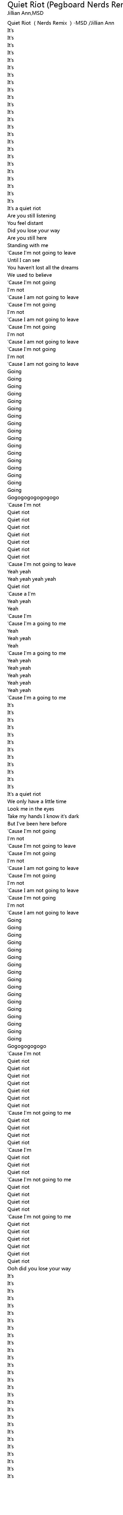 | [00:00.00] | Quiet Riot (Nerds Remix )-MSD /Jillian Ann |