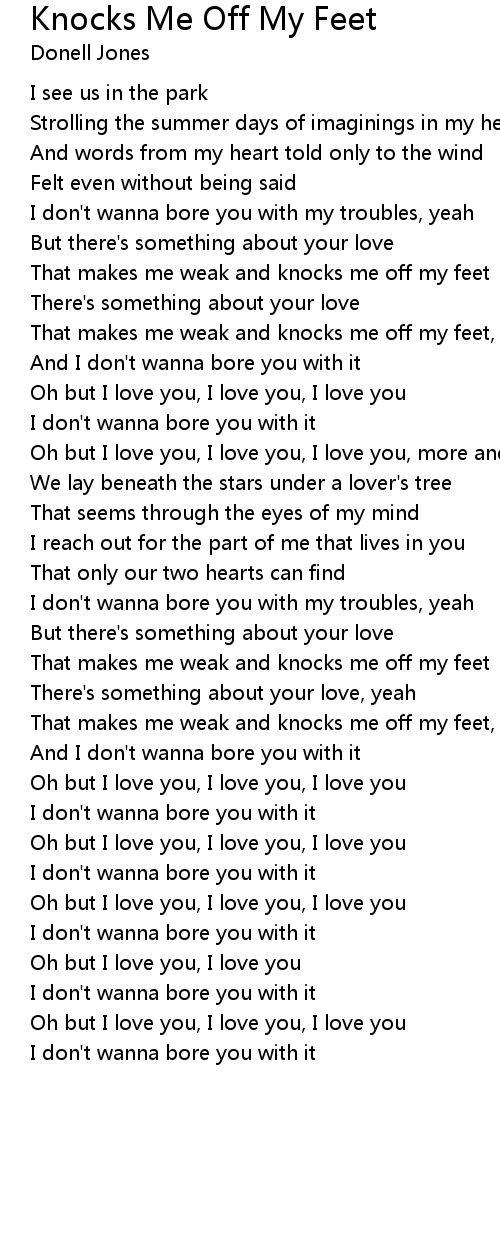 That makes me weak and knocks me off my feet, knocks me off my feet |