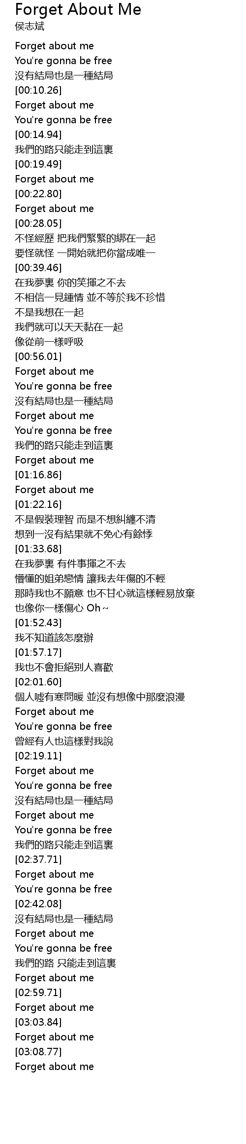 | [03:00.79] | Forget about me |