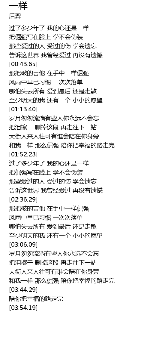 | [00:14.92] | 过了多少年了 我的心还是一样 |
