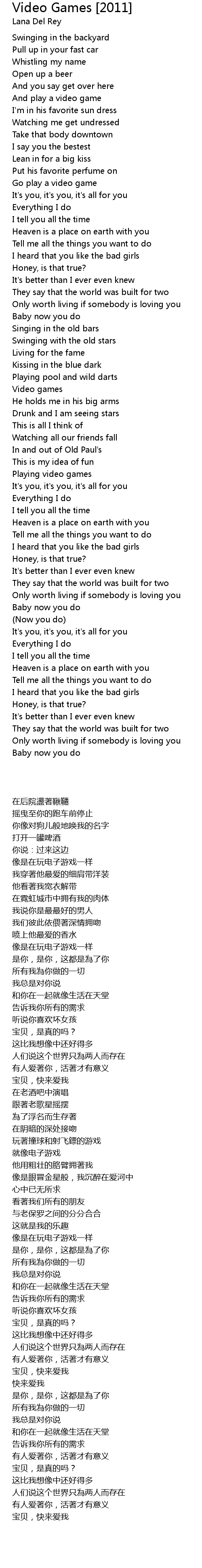 Video Games [2011] 歌词