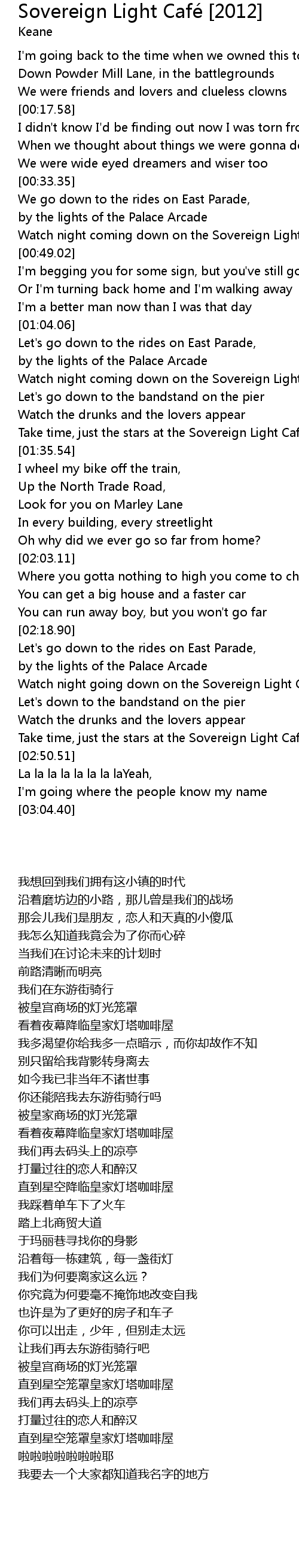 | [00:42.20] | Watch night coming down on the Sovereign Light Cafe |