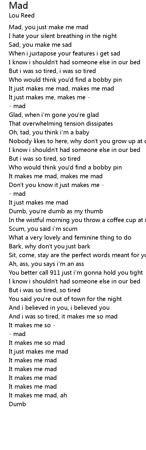 Mad, you just make me mad |