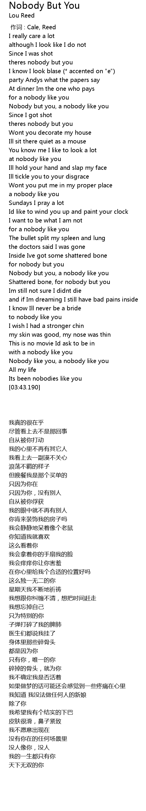 | [00:00.00] | 作词 : Cale, Reed |