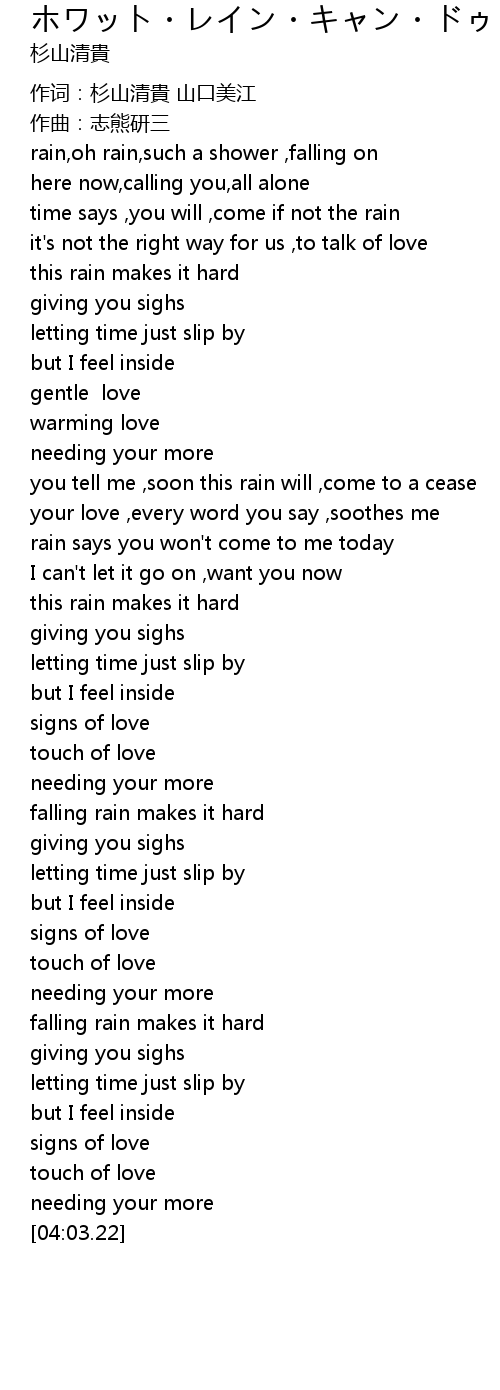| [02:03.56] | you tell me ,soon this rain will ,come to a cease |