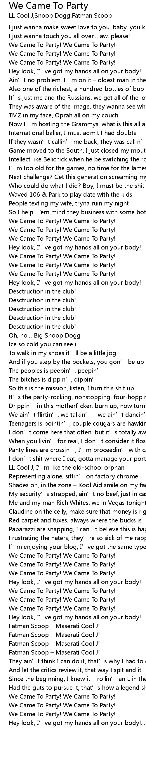| 歌曲 | We Came To Party |