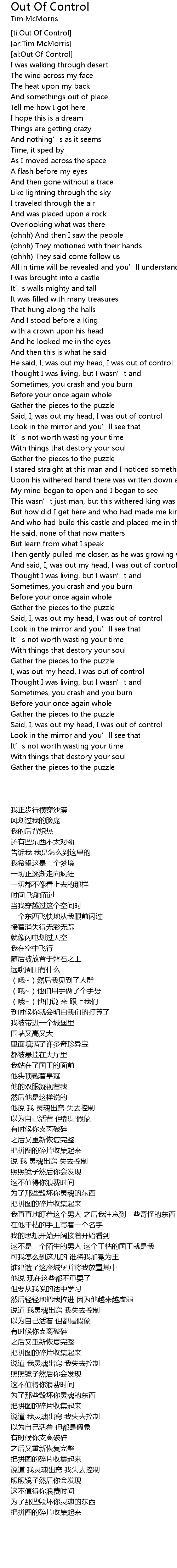 | [03:03.24] | 说道 我灵魂出窍 我失去控制 |