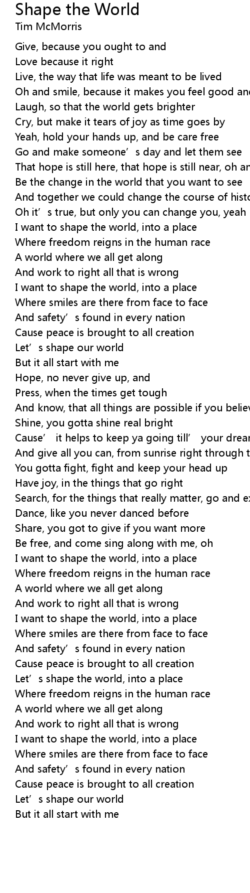 | [01:14.01] | Let' s shape our world |