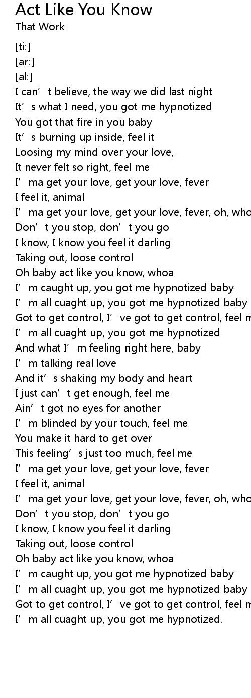 | [02:54.59] | Oh baby act like you know, whoa |
