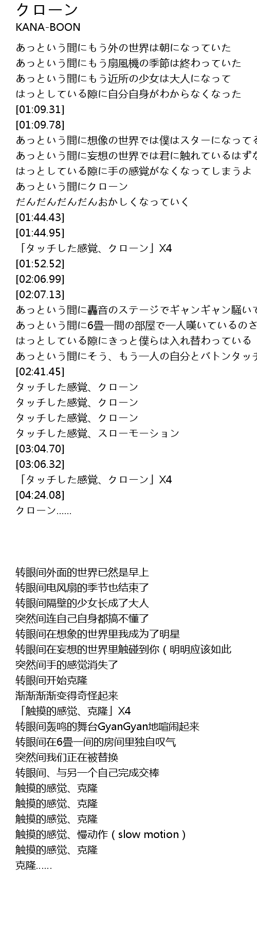 | [01:46.52] | 「触摸的感觉、克隆」X4 |