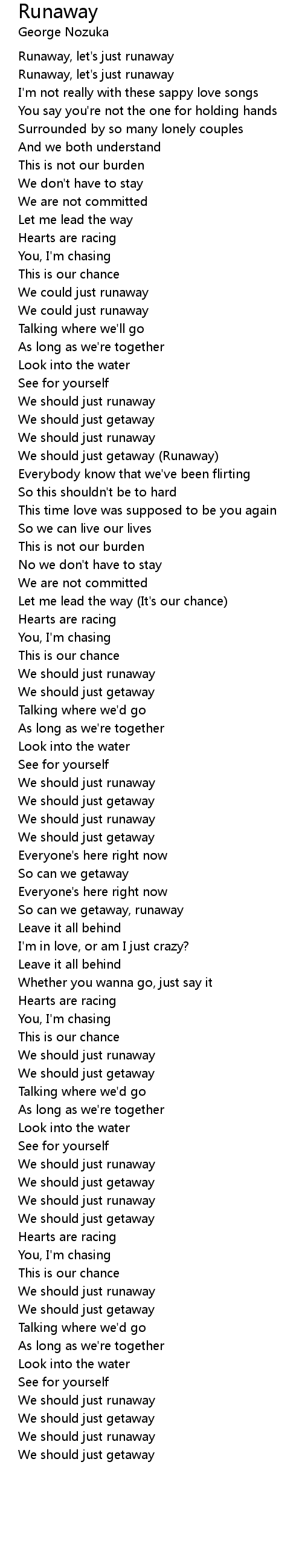 Runaway 歌词
