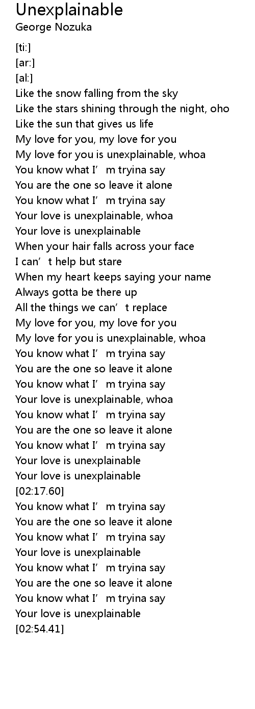 | [00:40.14] | My love for you is unexplainable, whoa |