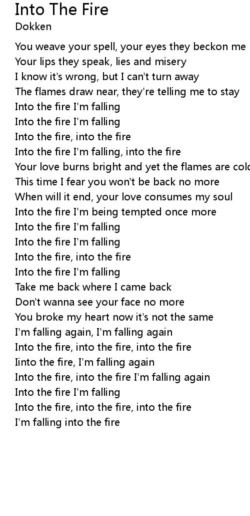 Into the fire I'm falling, into the fire